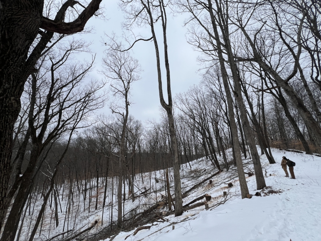Our land management “strike team” is actively working within a roughly 200-acre unit at Brown County State Park, implementing forest stand improvement practices and creating strategic canopy gaps to enhance breeding habitat for the Cerulean Warbler. This work will continue until spring migration, at which point efforts will shift from structural forest management to monitoring and maintenance. During this phase, the team will evaluate wildlife use of treated areas—including Cerulean Warblers, other bird species, mammals, and herpetofauna—while also assessing vegetative response, with particular attention to invasive species detection and treatment.